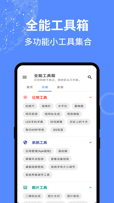 全能工具箱是一款强大实用的手机工具,它包含了多种实用工具,如单位转换器、计算器、翻译器、二维码扫描、文件管理等,帮助用户更加便捷地完成工作。全能工具箱还支持文件压缩、解压缩、图片编辑、视频剪辑等功能,满足用户日常生活中的各种需要,让用户的手机变得更加实用!
