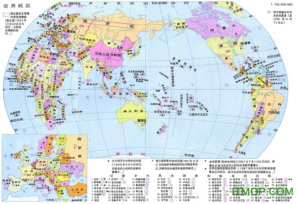 世界地图是广大读者了解世界的一个窗口。主要内容表示了世界各大洲、大洋的总体分布;采用分国设色方法表示各国家和地区的精确地理位置;表示了其国名、首都、水系、居民点、境界、交通等基本内容。北极地方,北极全图。南极地方,表示了南极洲地理概况及相关国家在南极设立的科学考察站的名称和位置等。