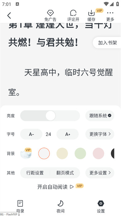 6、还可以点击屏幕中间根据自己个人的需求调节字体大小和亮度等。