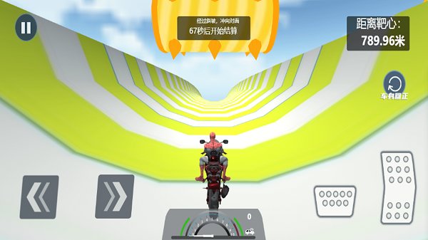 1.在挑战的过程中要灵活躲避路边出现的各种障碍物,保证角色可以驾驶摩托车安全的到达终点。
