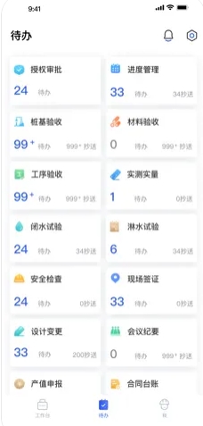 1.提供比较全面的工程管理功能,包括桩基验收进度管理、工序验收、材料验收、闭水实验、实测实量、渊水试验等安全检查工作。