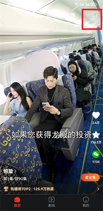 1、打开软件之后,在软件的首页界面点击右上角的【放大镜】进入到搜索的界面中;