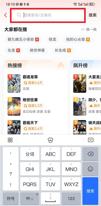 2、在搜索界面中,输入我们想看的【作品名称】然后点击搜索就可以;