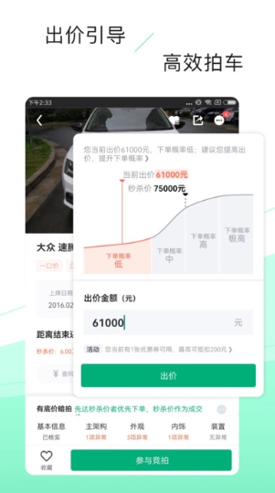 消费者用户在选择好自己喜欢的车辆以后,可以直接和卖家沟通砍价,在最终敲定环节然后会自动弹窗询问消费者,用户的心理价格,卖家的最终价格也会实时更新,透明式交易让每一个用户能够更加放心。