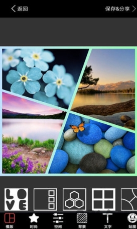 1,设置了各种各样的模板,自由选择这些模板进行拼图,让拼出来的图片能够更理想的展示用户的需求。