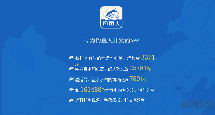 4、学技巧: 各种钓鱼知识、百科,71356篇各种水域、天气、对象鱼的钓鱼技巧,提高钓技;看视频: 351个国内外钓鱼节目,257532条钓鱼视频,随时想看就看。找钓场: 覆盖全国585个城市,73125家真实的钓场和渔具店,全部经钓鱼人APP人工核实;查找附近的钓场和渔具店一键导航;