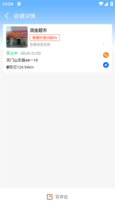 2、点击自己想要查看的商铺就能看到商铺的营业时间和地址等详细的信息内容;