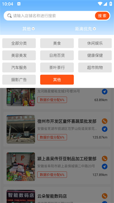 1、进入到软件之后可以通过分类筛选出自己想要寻找的商铺信息;