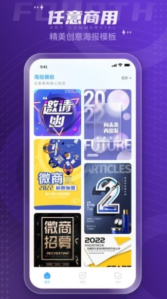 2,一键套用不规则图像素材来获得最快的海报编辑,通过现有的模板,直接对海报进行编辑,编辑的海报虽然不会让人眼前一亮,但是也中规中矩。