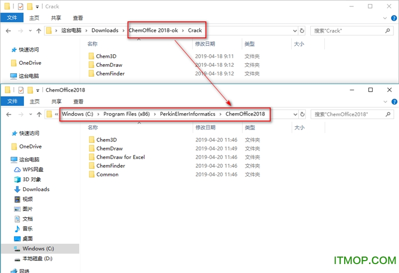 11、将Crack文件夹内的所有文件复制到软件安装位置ChemOffice2018目录下替换