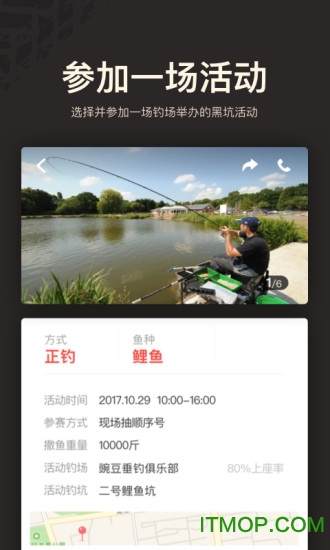 钓场作为钓鱼人的活动场所,钓场开通加入到微钓后,通过举办活动,与广大钓友们在线下亲密互动。钓友也非常方便的报名参加。一切活动举办和参加都变得那么容易!