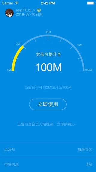 2、可提速网络环境用户登录迅雷快鸟或超级会员最高可将宽带提升至100M