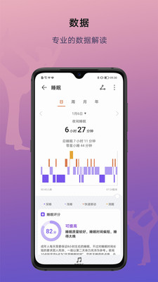 1、配合荣耀智能穿戴设备,准确监测不同睡眠阶段,提供科学的睡眠质量评估和改善建议,助你睡的更香。