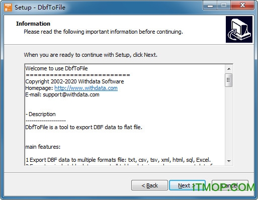 DbfToFile是一款数据转换软件,可以帮助数据库用户将DBF数据库数据导出到CSV(TXT),SQL,xml,和Excel。