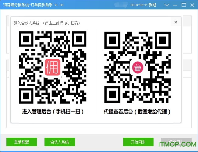 点合伙人系统 按钮,会弹出2个二维码,点二维码可以直接电脑打开,也可以扫一扫手机打开。