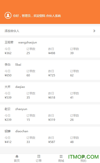 点下面导航栏“合伙人”,就可以查看每个合伙人的具体业绩