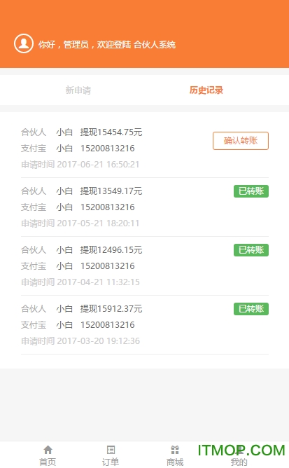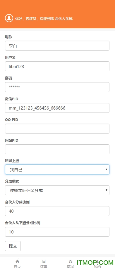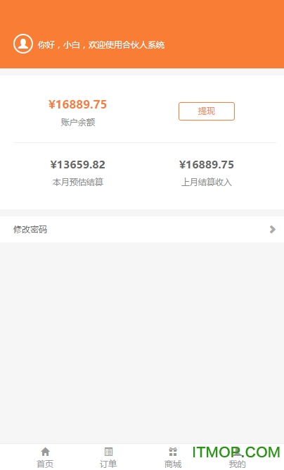 是不是很像一个小联盟呀,联盟结算给你,你从合伙人系统结算给代理;你从联盟提现,代理从你的合伙人系统这里提现。