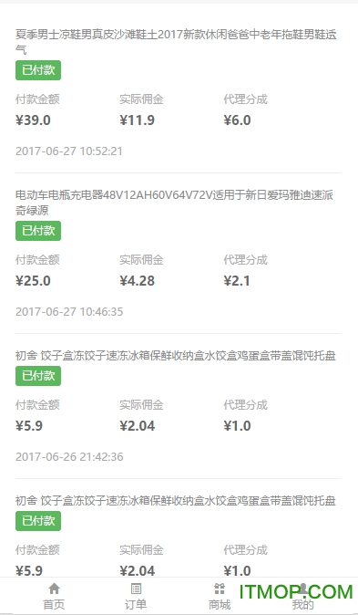 还可以查看代理的订单列表,里面 实际佣金你可以看得到,代理是看不到的。