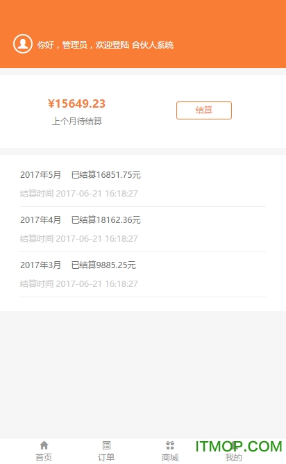 每个月联盟结算后,分佣系统会自动计算出每个代理上月的收入,你点“结算”,收入到代理的余额里面了