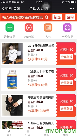 你和所有代理们都可以在合伙人系统里面的商城,分享对应商品赚钱