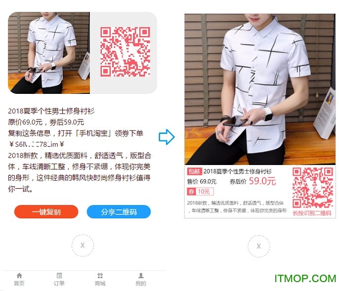 点击分享赚后,自动转链,支持一键复制、二维码、截屏等,代理也可以在手机上选品发给好友 、群里 或 发到朋友圈