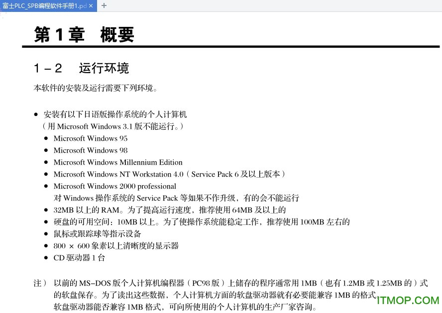 第1章的IAJ容是本软件的概要介绍、所需运行环境、安装、与PC连接所必需的设备。