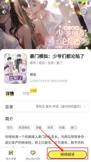 2、之后我们选择自己感兴趣的书本,点击下方黄色按钮【继续阅读】,如下图所示;