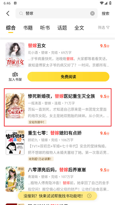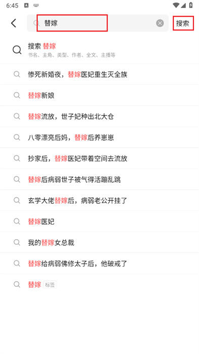 3、此时屏幕之中将会出现有【替嫁】标签的所有小说;