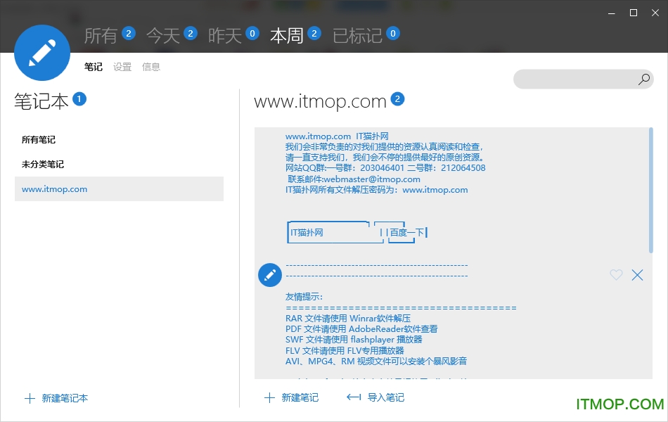 2、功能十分简单,只有多笔记本、根据时间检索,以及内容搜索功能