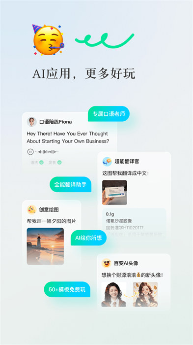 腾讯元宝ai软件是一款拥有各种先进ai功能的辅助软件,在日常的搜索以及写作等方面都能提高效率,同时整个软件还支持编辑文案以及翻译文案,帮助整个页面看起来更加的整齐,如果有需要翻译方面的需求,直接导入文件即可让ai协助操作,这里有着最基本的准确率,有需要的用户完全能直接来使用,不仅如此,目前这里的工具完全免费使用,无需大家付费来进行对话和创作,如果你也对ai非常的感兴趣,快来小编这里了解一下吧!