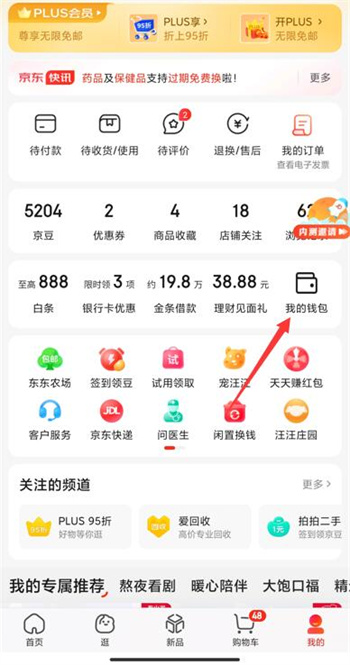 2、在个人中心中点击右侧的【我的钱包】功能;
