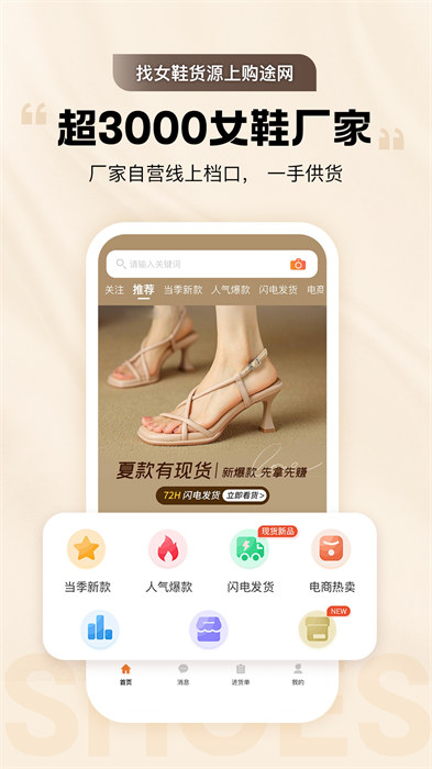 go2货源app中无论你是个人,微商,实体店卖家,网店卖家都能在go2货源找到想要的低成本高质量的新款以及爆款女鞋货源!汇聚源产地优质女鞋货源,每日新增上万最新款式;爆款热款一手掌握,成本报价售后无忧!不上go2货源app就真的亏了!