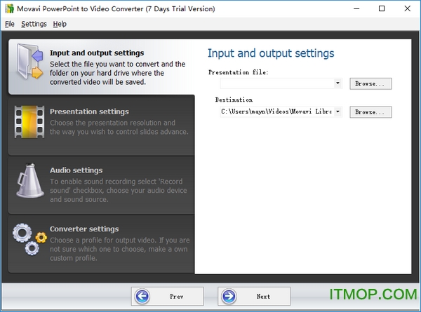 单击“演示文件”字段附近的“浏览”,并选择要转换的PPT文件。如有必要,请更改下面的目标文件夹。
