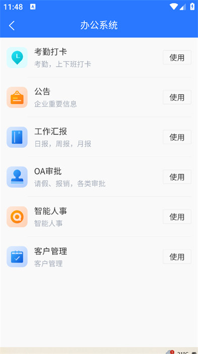 1、进入到软件之后可以看到各种各样的办公系统可以去进行使用操作,使用自己需要使用的就可以了;