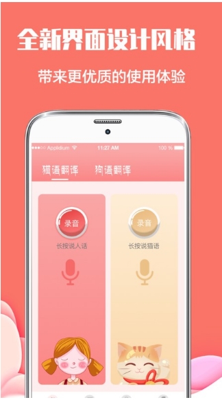 宠物语言功能强大:包含所有的猫咪狗狗品种的语言翻译,并且有多种声音类型供用户自由挑选,更好的服务用户,让用户与宠物之间无缝连接。
