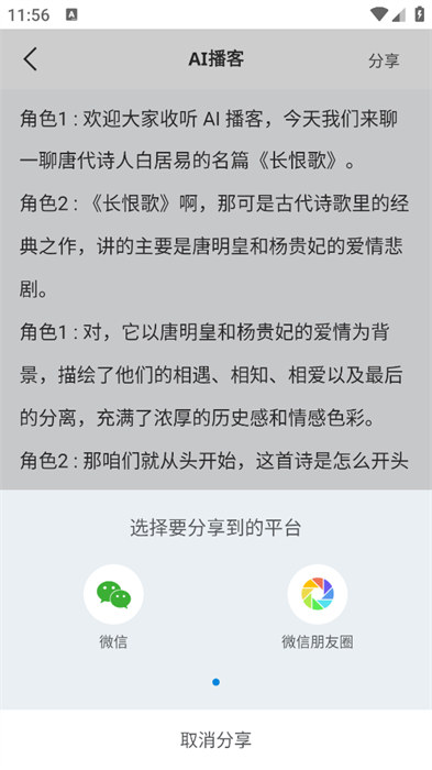 6、还可以将自己喜欢的播客分享给自己的微信好友或者是朋友圈里面。