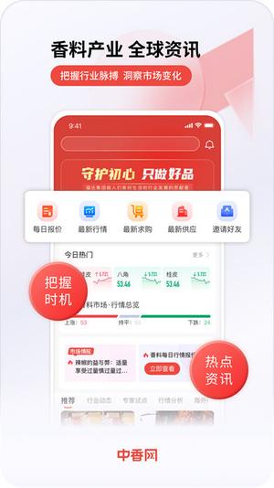 中香网是一款交易香料的应用,集合了销售、采购、仓储、物流和检测等一体化线上交易的服务内容,提供了行业里面的最新资讯信息的内容和最全面的资讯,一级香料市场的价格行情资讯信息内容都可以了如指掌的掌握到,并且积极的开展了国内和国外香料线上贸易的业务,全方位的满足了需求。