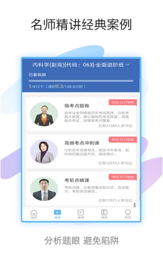 所有科目类的知识点讲解,有关于所有内科的各种方向以及各种不同的考试章程,进行知识点分析和实践模拟。