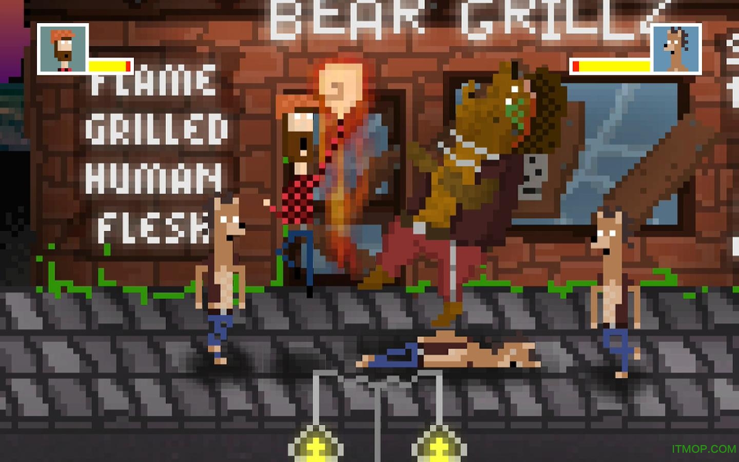 是由一家独立工作室开发的像素风格斗游戏,开发者Nicol Hunt不知和棕熊有什么仇,不光把自己的工作室命名为I Fight Bears“我打熊”,别看这款游戏的像素风画面略显粗糙,它去年在Kickstarter网站上可是筹到了11,000英镑的资金,这个数目是预期目标的2倍,可见玩家对这款游戏的期待。感兴趣的朋友来看看游戏的试玩视频吧!别看游戏为粗糙的像素画面,可是该有的打斗动作、Combo可是一个都不少哦!就连游戏中的格斗对象也是一头头大棕熊(当然还有驯鹿、狐狸、恐龙等其他动物)。
