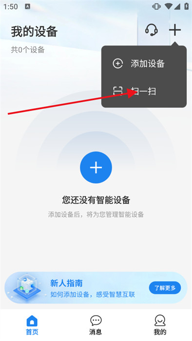 2、随后,点击首页上的【添加设备】,可直接跳转到连接设备的页面;