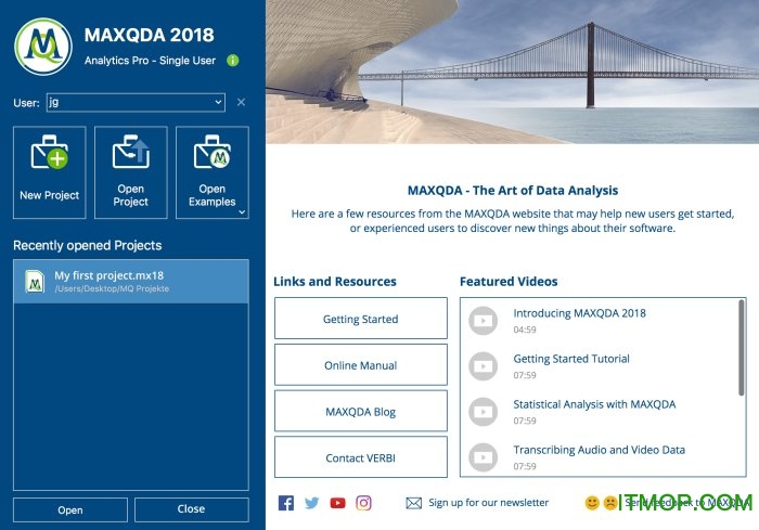 打开程序后,您将看到的第一件事是MAXQDA欢迎屏幕。在左侧,您可以启动新项目或打开任何现有项目。在右侧,您将看到包含所有最新MAXQDA新闻和学习资料的视频和链接。
