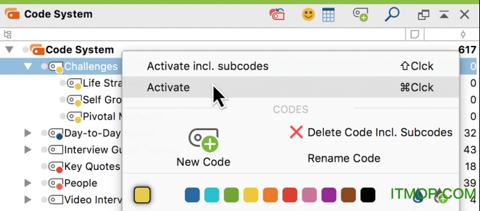 分析您的数据通常需要根据您的研究方法和方法学方法对其进行分类。这些类别在MAXQDA中称为“代码”; 在代码下分类的数据选择(例如,访谈中的单词,句子或部分)被称为“编码分段”。