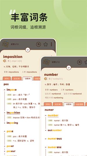 ● 海量词库:小学/初中/四级/六级/考研/托福/雅思/托业/计算机/BEC/SAT/GRE/GMAT...权威词库让你挑选,让学习更舒心