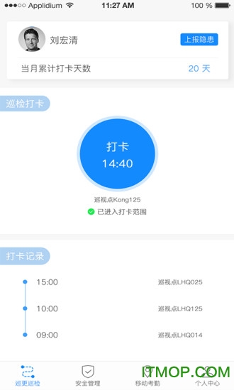 1、巡检人员考勤打卡,实时监督员工实际工作