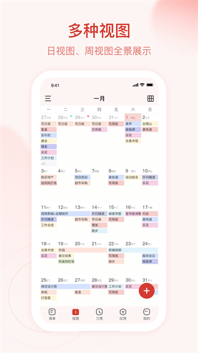 可以设置习惯打卡任务,每日完成任务进行打卡,生成你的专属打卡记录