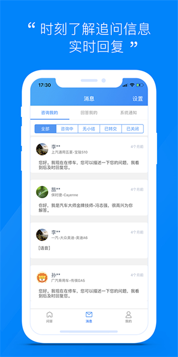 汽车大师技师版免费是专为汽车技师精心打造的一款汽车咨询服务软件。汽车技师们发表各种汽车修理、养护方面的信息,为车主们提供专业的汽车方面的问题解答,轻松获取报酬。只要你拥有一手高超的汽车修理技术,就可以通过该平台在线赚取报酬。欢迎用户到itmop软件android下载网下载体验。