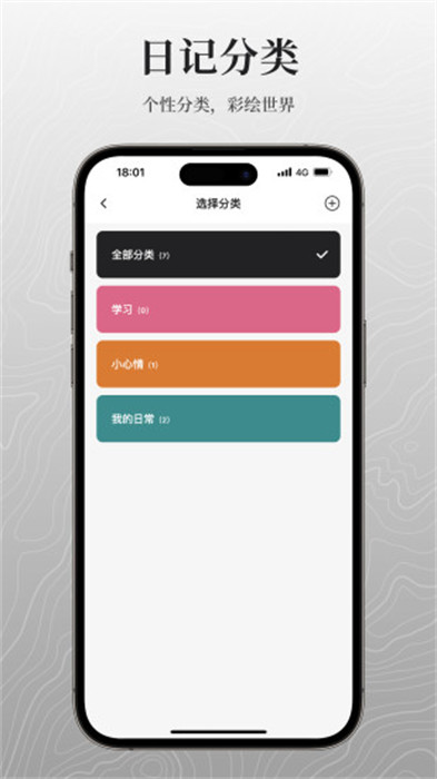 3、日记分类详细,不管是日常琐事还是工作烦恼都能在不同的分类进行记录。