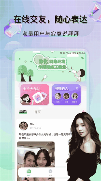 软件上的所有用户都通过实名+视频的认证,保证都是真人,可以放心交友聊天,多种模式随心体验,说不定还能遇到适合自己的TA。