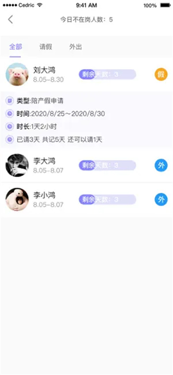 1.有请假需求的用户直接点击请假,就能够向自己的领导通过线上渠道直接请假。