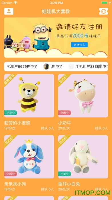 抓到的娃娃三件包邮寄到家!不想要的娃娃也可以兑换其他奖品哦!